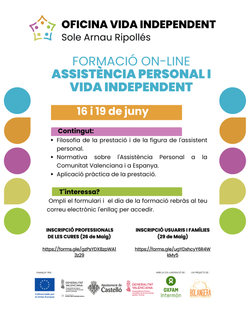 La Oficina per la Vida Independent Sole Arnau Ripollés de Castelló, rep finançament dins del projecte Tejiendo Derechos de Oxfam Intermón. Llegeix més »