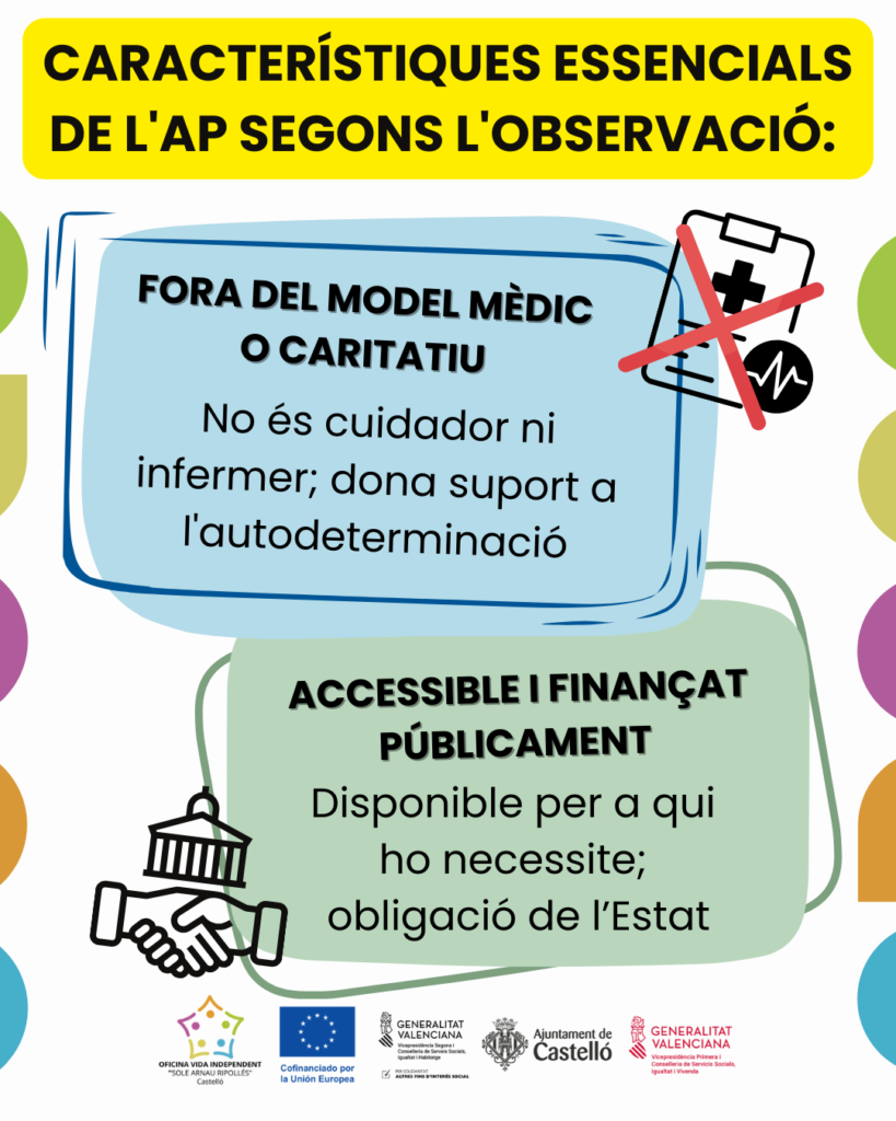 – FORA DEL MODEL MÈDIC O CARITATIU: No és cuidador ni infermer; dona suport a l’autodeterminació
