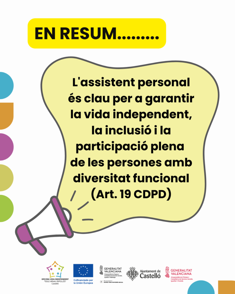 L’assistent personal és clau per a garantir la vida independent, la inclusió i la participació plena de les persones amb diversitat funcional (Art. 19 CDPD)